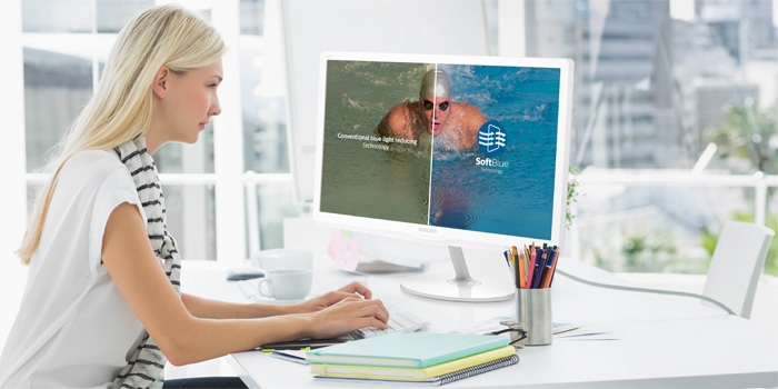 Philips wirkt diesem Problem bei seinen neuen Monitoren der E-line entgegen, indem die Wellenlänge des blauen Lichtes so verändert wird, dass die Strahlung des schädlichen Lichtanteils minimiert wird. Konkret wird die Wellenlänge von 450 nm auf 460 nm angehoben. Mit diesem Verfahren, Philips nennt es SoftBlue-Technologie, werden die schädlichen blauen Lichtanteile um über 90 Prozent reduziert. Trotz dieser Korrektur werden die Farben originalgetreu wiedergegeben.