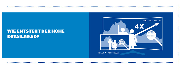 Um einen hohen Detailgrad zu erreichen, setzt Samsung auf seine erweiterte Upscaling-Funktion. Hierbei werden zum Beispiel Filme, die nicht in UHD-Auflösung aufgenommen wurden, „hochgerechnet“ oder skaliert. Dabei wird die niedrigere Auflösung des Originalfilmmaterials auf die höhere des Fernsehers erweitert. Die dabei entstehenden „Lücken“ in den Bildinformationen in Form fehlender Bildpunkte werden dann rechnerisch ermittelt und ausgefüllt, so dass ein vollständiges Bild in hoher Auflösung zu sehen ist. So werden auch Full-HD Inhalte in hervorragender UHD Qualität dargestellt.
