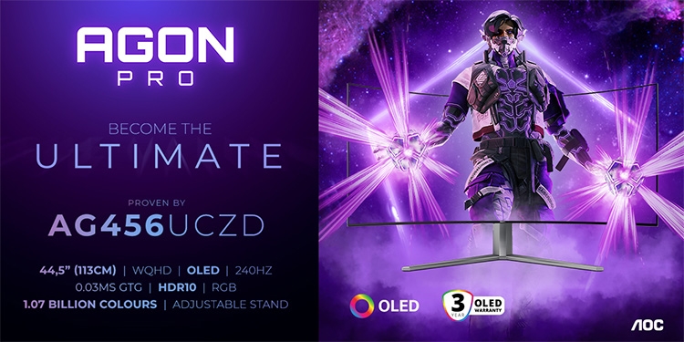 AGON by AOC präsentiert den 86,4 cm (34“) Gaming-Monitor AGON PRO AG346UCD für echte Enthusiasten. Das Curved-Modell (1800R) aus der AGON PRO Reihe kommt mit QD-OLED-Panel, 175 Hz sowie UWQHD-Auflösung (3440 x 1440). Der AGON PRO AG346UCD bietet ein ultraweites 21:9-Seitenverhältnis und füllt...