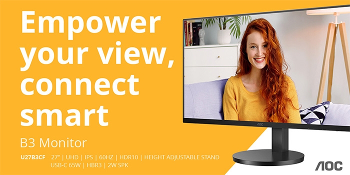 AOC präsentiert mit dem U27B3CF einen hochwertigen 68,6 cm (27“) 4K-Monitor für effizienteres Arbeiten professioneller Anwender. Das 27“ IPS-Panel des AOC U27B3CF bietet eine 4K UHD-Auflösung (3840 x 2160) für exzellente, naturgetreue Darstellungen mit einer Dichte von 163 PPI – ideal also für...
