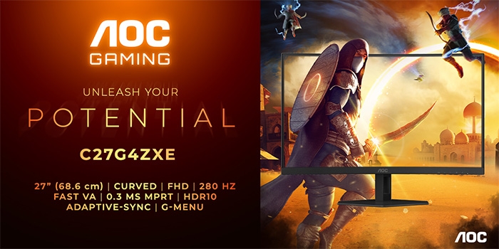 AGON by AOC stellt den AOC GAMING C27G4ZXE aus der kürzlich eingeführten Gaming-Serie G4 vor. Der 68,6 cm (27“) Curved Full-HD-Monitor hat eine1500R-Krümmung sowie einer Bildwiederholrate von 280 Hz. Mit seinem schlanken, von „Stealth-Fightern“ inspirierten, kantigen Design, ist er die perfekte...
