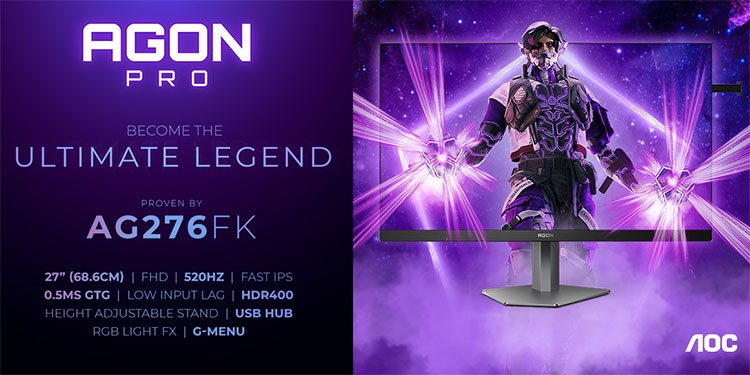 AGON by AOC präsentiert mit dem 68,58 cm (27“) großen AGON PRO AG274QS ein QHD-Display (2560 x 1440 Pixel) mit atemberaubender 300-Hz-Bildwiederholrate. Das leistungsstarke, dreiseitig rahmenlose Highspeed-Modell kommt mit IPS-Panel, DisplayHDR 600 und einer Reaktionszeit von 1 ms (GtG)...