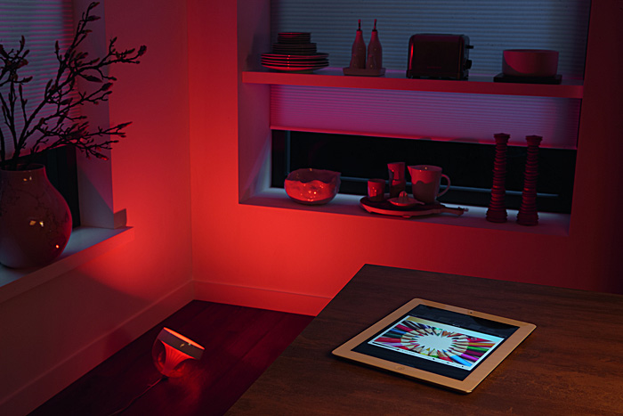 Um die perfekte Raumatmosphäre zu schaffen, ob für eine Dinnerparty oder einen entspannten Tagesausklang, wird eine „Philips Hue Bluetooth“-Lampe anstelle eines vorhandenen Leuchtmittels in eine Lampenfassung geschraubt. Auf einem Smartphone oder Tablet wird die „Philips Hue Bluetooth“-App installiert und die neue Lampe angemeldet. Die Steuerung erfolgt via Bluetooth.