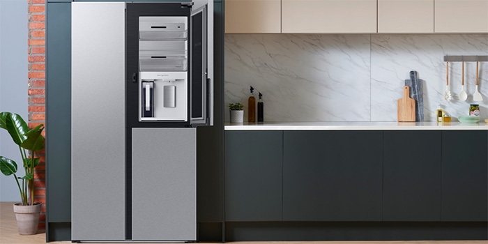 Passend zum Start in die wärmere Jahreszeit präsentiert Samsung neue Side-by-Sides. Alle Lebensmittel im geräumigen Innenraum können gleichmäßig gekühlt und so auch lange frisch bleiben, während die Milch für den morgendlichen Kaffee oder der Lieblingssnack durch den neuen Food Showcase nur einen Handgriff entfernt sind. Das in ausgewählten Modellen ebenfalls integrierte Getränke-Center (Beverage-Center) mit Dual Auto Ice Maker erweitert die Wahl des angenehm gekühlten Getränks – egal, ob der Sinn nach gefiltertem Wasser, Ice Cubes für den Cold Brew Coffee oder Ice Bites für einen sommerlichen Cocktail steht.