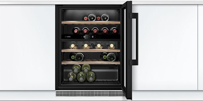 Vier Weinschränke der gehobenen Serie 6 von Bosch sorgen mit überzeugender Leistung und exquisiter Ausstattung für jederzeit perfekten Genuss.