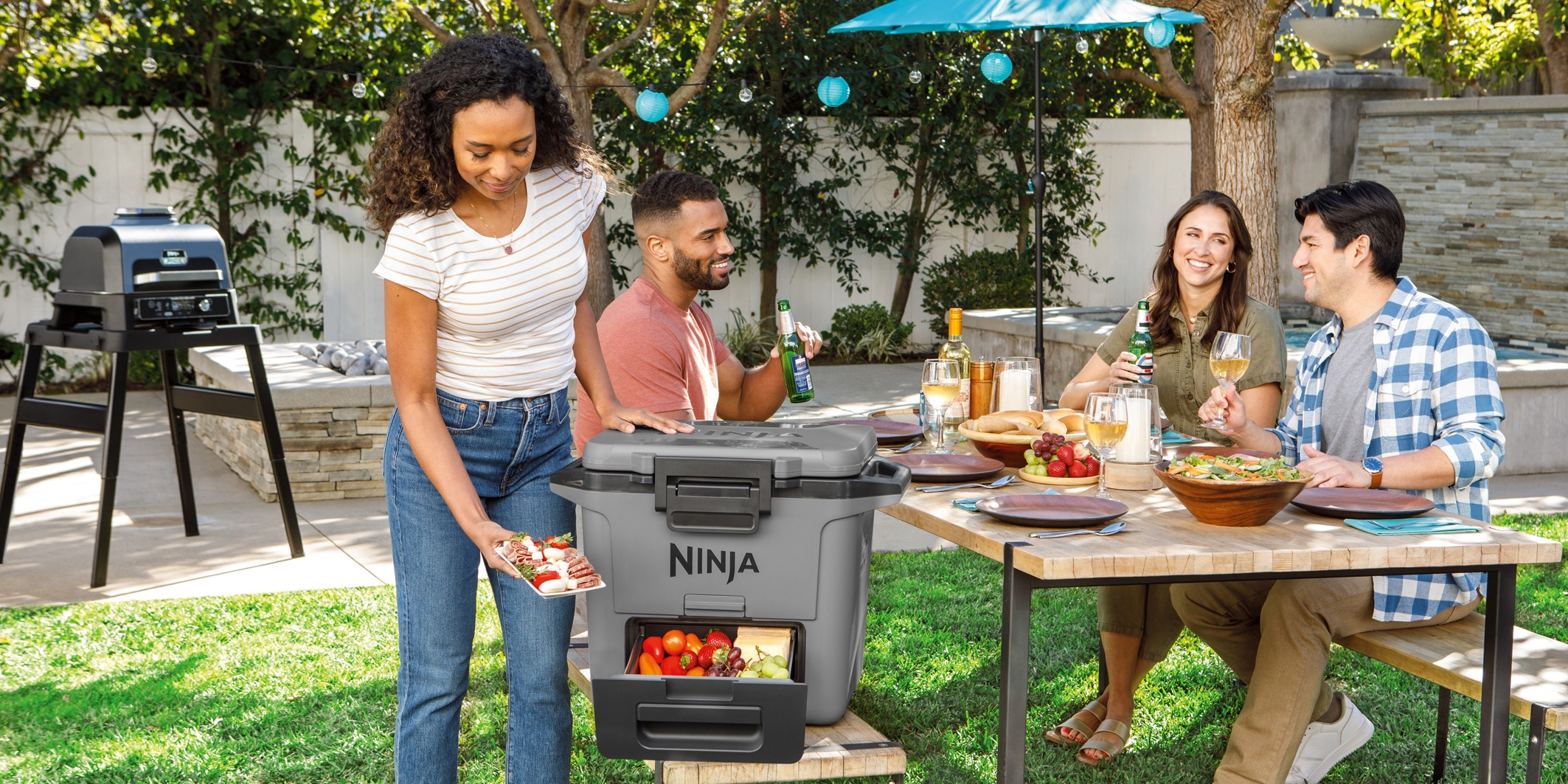 Die neue Kühlbox von Ninja überzeugt mit einer einzigartigen Kühlkammer – im Gegensatz zu herkömmlichen Kühlboxen verfügt die Ninja FrostVault über zwei getrennte Bereiche. Eis oder Kühlpacks werden von den zu kühlenden Lebensmitteln separiert, sodass keine Nässe entsteht. Dank der sogenannten Dry-Zone-Schublade wird beispielsweise auch das Risiko von Keimbildung bei rohen Lebensmitteln vermindert. Aus diesem Grund ist die neue Kühlbox auch perfekt für den Einsatz auf Campingausflügen und Festivals geeignet: Speisen und Getränke werden dank der hochwertigen Isolierung bis zu fünf Tage lang trocken und bei Kühlschranktemperaturen (unter 4,5 °C1) gehalten.