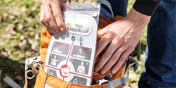 Das LifePad ist einfach anzuwenden und benötigt keine Vorkenntnisse. Alle Schritte, die im Notfall zu tun sind, werden direkt auf dem Produkt verständlich abgebildet. Zum Starten muss lediglich der Batteriestreifen gezogen werden. Sofort ertönt der Signalton, der den Rhythmus der Kompression vorgibt. Die roten Markierungen zeigen die Platzierung auf dem Brustkorb selbsterklärend an. Die erhöhte Auflagefläche hilft bei der korrekten Positionierung der Hände.