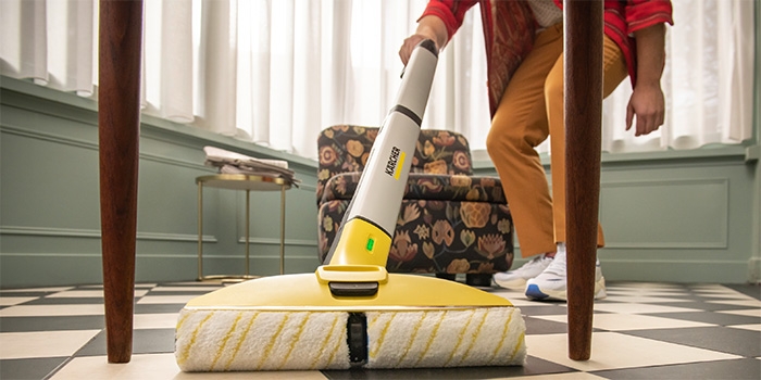 Mit dem elektrischen Wischmopp EWM 2 von Kärcher lassen sich Böden ohne großen Aufwand schnell und gründlich reinigen.