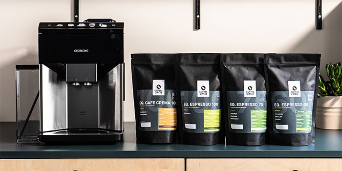 Vom kräftigen Espresso bis hin zum würzigen Cafe Crema stehen Spezialitätenkaffees von Coffee Circle speziell für die Siemens Vollautomaten zur Verfügung. Im Rahmen der neuen Partnerschaft entwickelte die Berliner Kaffeerösterei vier exklusive Kaffee- und Espressosorten, die speziell auf die Kaffeemaschinen der EQ. abgestimmt sind: